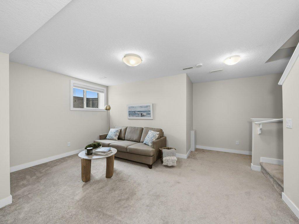 This well-maintained 3 bedroom end-unit townhouse in the Heartland community of Cochrane offers a functional three-level layout plus a fully finished basement. The open concept main floor features a contemporary kitchen with quartz countertops, stainless steel appliances and ample cabinetry, opening to a bright living and dining area with large windows and plenty of natural light. The second level includes two good sized bedrooms and a full bathroom, while the top floor is dedicated to a spacious primary be...