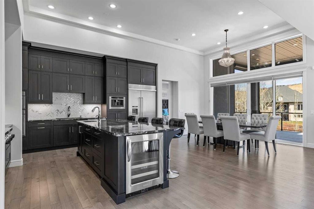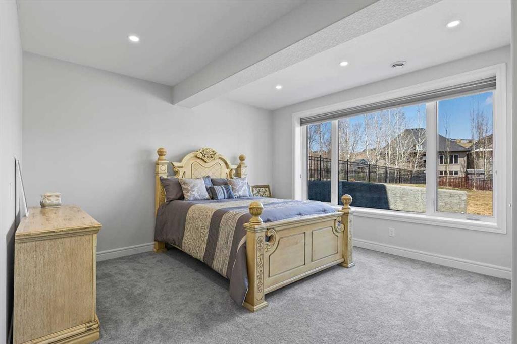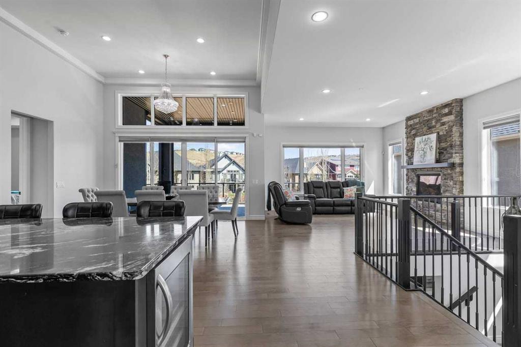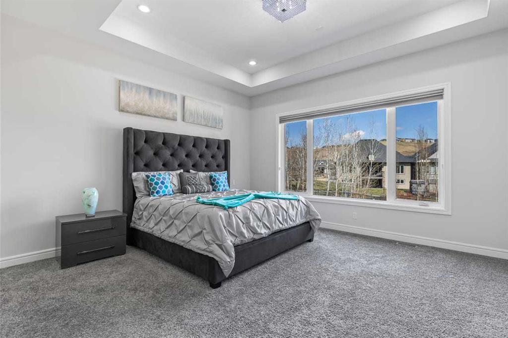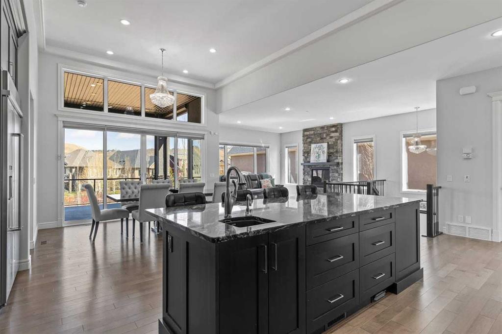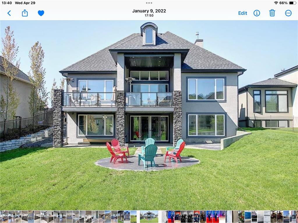 Luxurious Dream Bungalow is situated on a massive 62 x 202 almost 1/3 Acre of lot in the prestigious Riverstone Estates of Cranston, built by ALBI Homes. Offering over 3,900 sqf of beautifully developed living space, this home is in an exclusive community just steps from the BOW RIVER & FISH CREEK PARK. This stunning property features soaring ceilings, over $200,000 in upgrades, and a heated 4-car garage with a HI-LIFT setup ready for 2 more vehicles, finished with a striking flaked FX EPOXY INFLOOR HEAT...