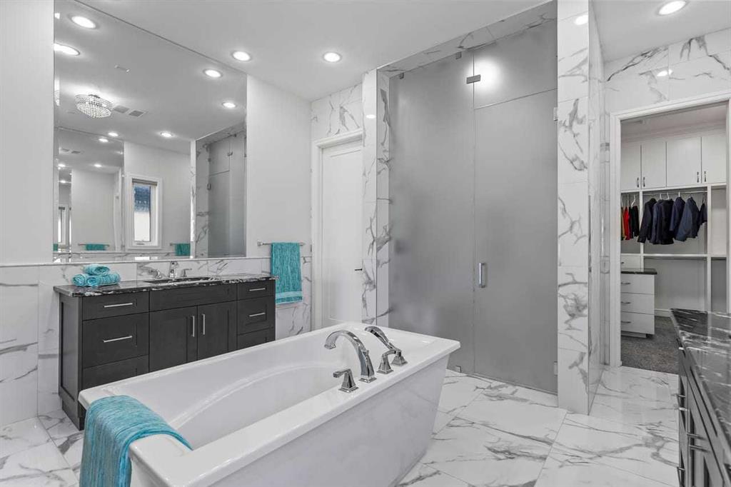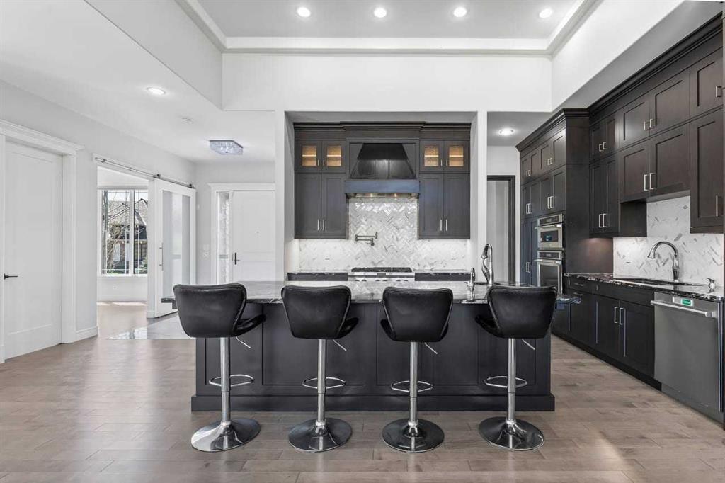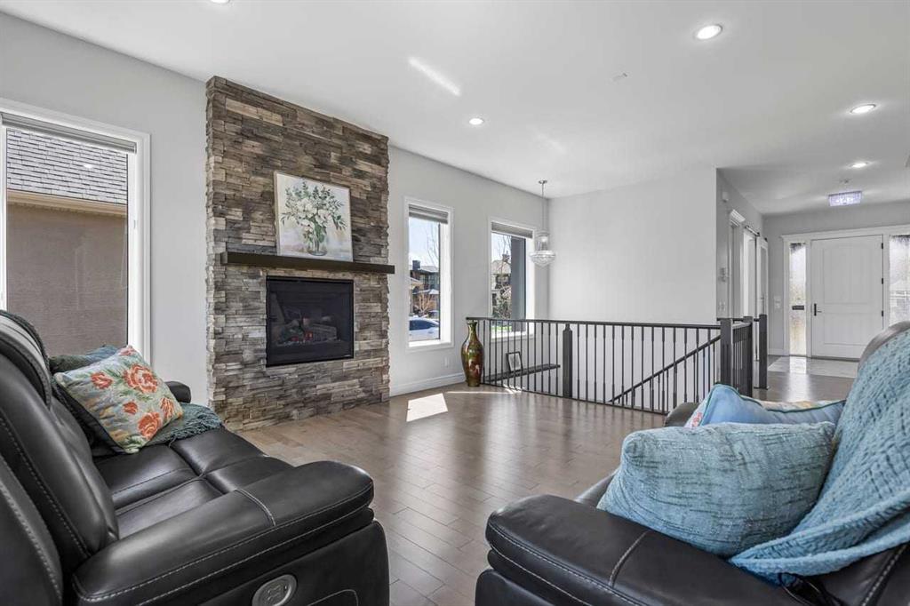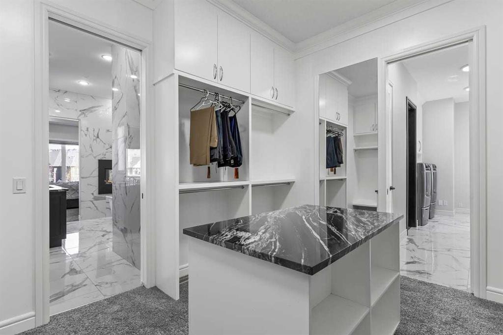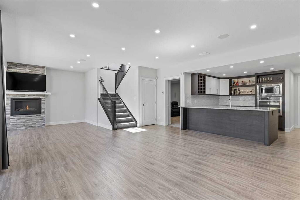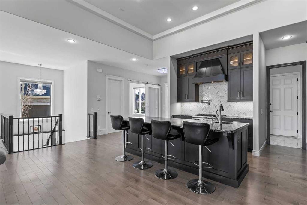 Luxurious Dream Bungalow is situated on a massive 62 x 202 almost 1/3 Acre of lot in the prestigious Riverstone Estates of Cranston, built by ALBI Homes. Offering over 3,900 sqf of beautifully developed living space, this home is in an exclusive community just steps from the BOW RIVER & FISH CREEK PARK. This stunning property features soaring ceilings, over $200,000 in upgrades, and a heated 4-car garage with a HI-LIFT setup ready for 2 more vehicles, finished with a striking flaked FX EPOXY INFLOOR HEAT...