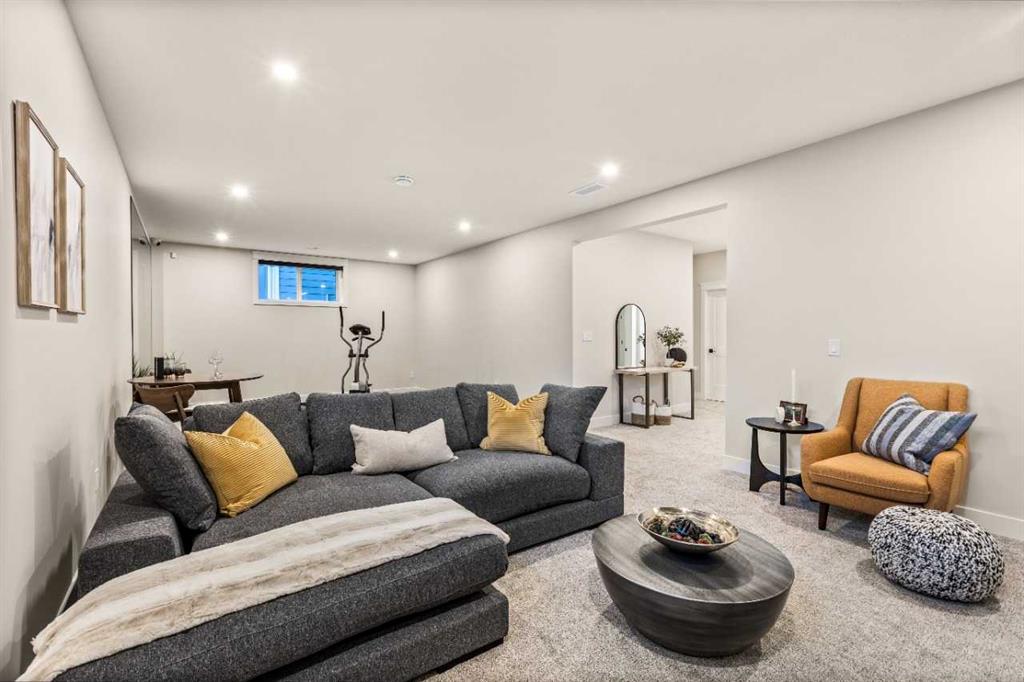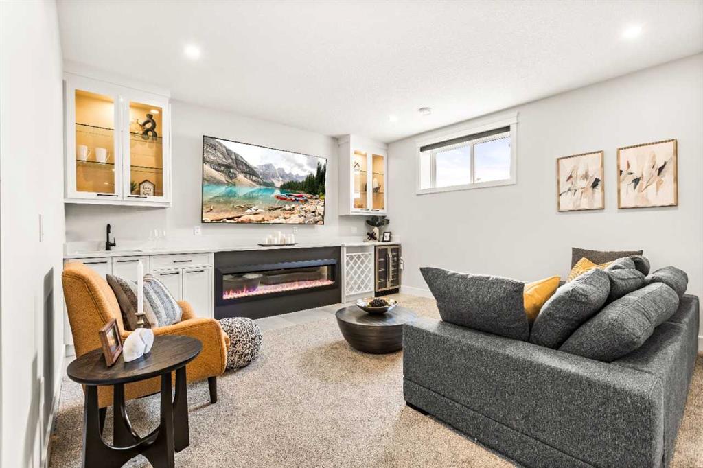 Nestled in a serene lakeside community, this exquisite 2-storey Show Home features 6 bedrooms, 5 full bathrooms, and a fully finished basement on a premium lot. The main floor boasts 10-ft ceilings, hardwood flooring, quartz countertops, a living room with feature wall, a den/office, a spice kitchen with gas range, hood fan, fridge, and dishwasher, plus an upgraded main kitchen with waterfall island and built-in KitchenAid appliances. The open-to-below in the family area showcases a natural gas fireplace, s...