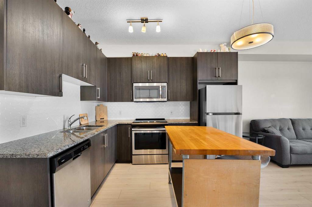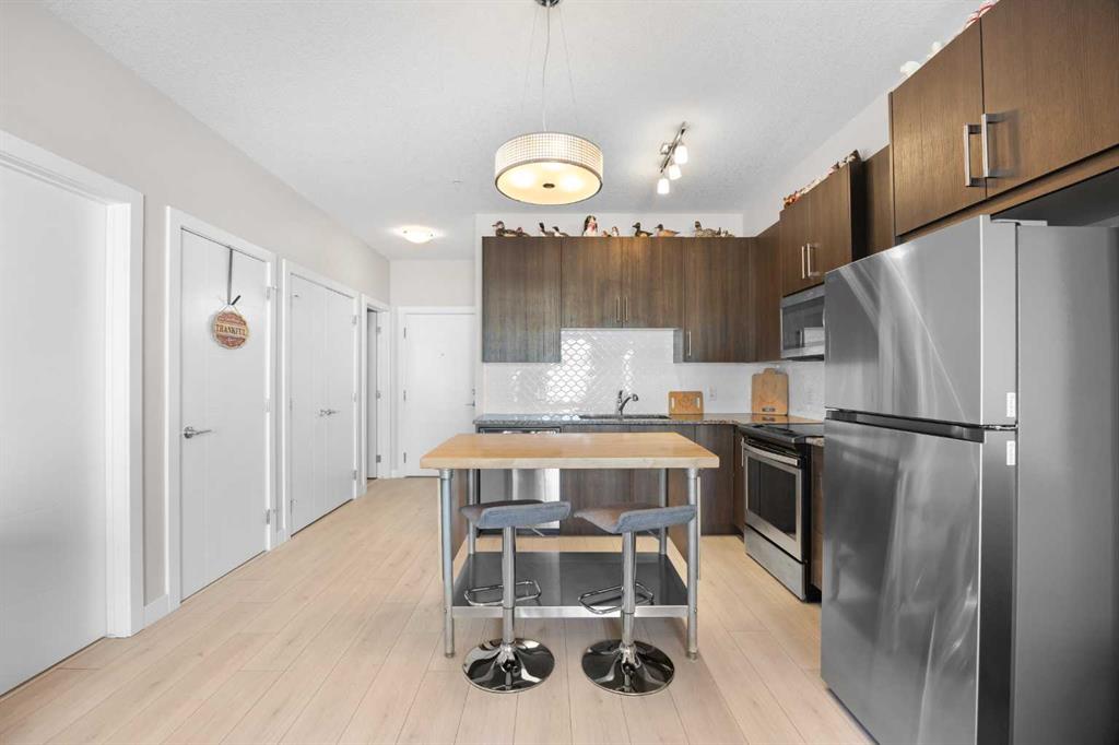 Welcome to this well-appointed apartment in the desirable community of Sage Hill, offering 1 Bedroom + Den, 1 Bath, and 573 sq ft of comfortable living space with the added luxury of in-floor heating throughout. Step inside and be greeted by impressive 9-foot ceilings and beautiful vinyl plank flooring. The open-concept floorplan features a bright North-East facing Living Room that flows seamlessly into the Kitchen. The well-appointed Kitchen boasts granite countertops and stainless steel appliances, includ...