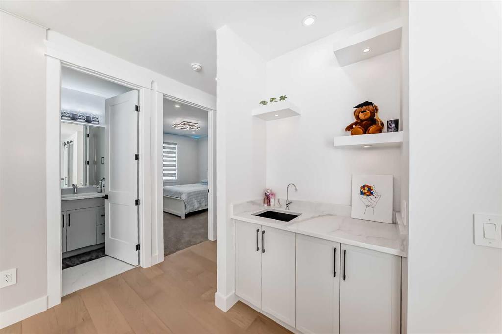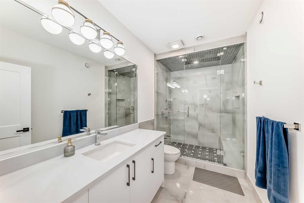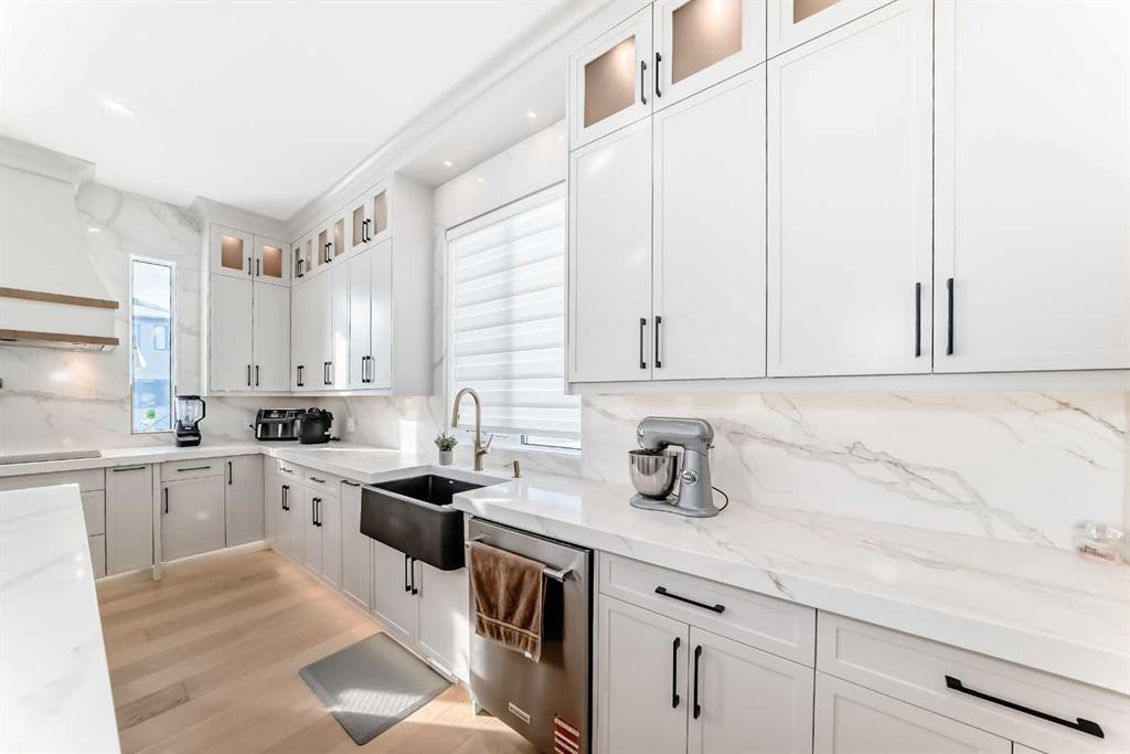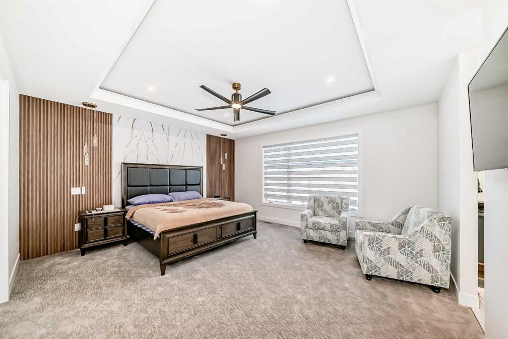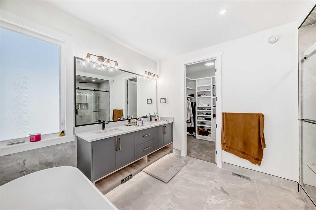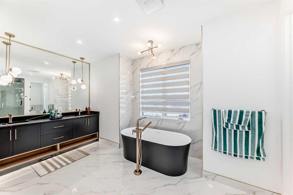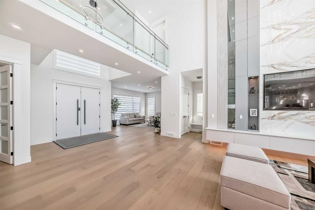 Welcome to this gorgeous 4,889 SqFt custom built home nestled in community of Cambridge Park - minutes from NE Calgary. Boasting with modern and elegant design, this 6 bedroom, 6.5 bathroom, 2 storey home with over 4,800 sqft of developed living space on the main and upper levels is one you don't want to miss. Every detail matters; from the hidden in-floor heat vents to the grand chandelier hanging in the 20ft ceiling front living room. The main level's open floor plan with high ceilings, pot lighting, ove...
