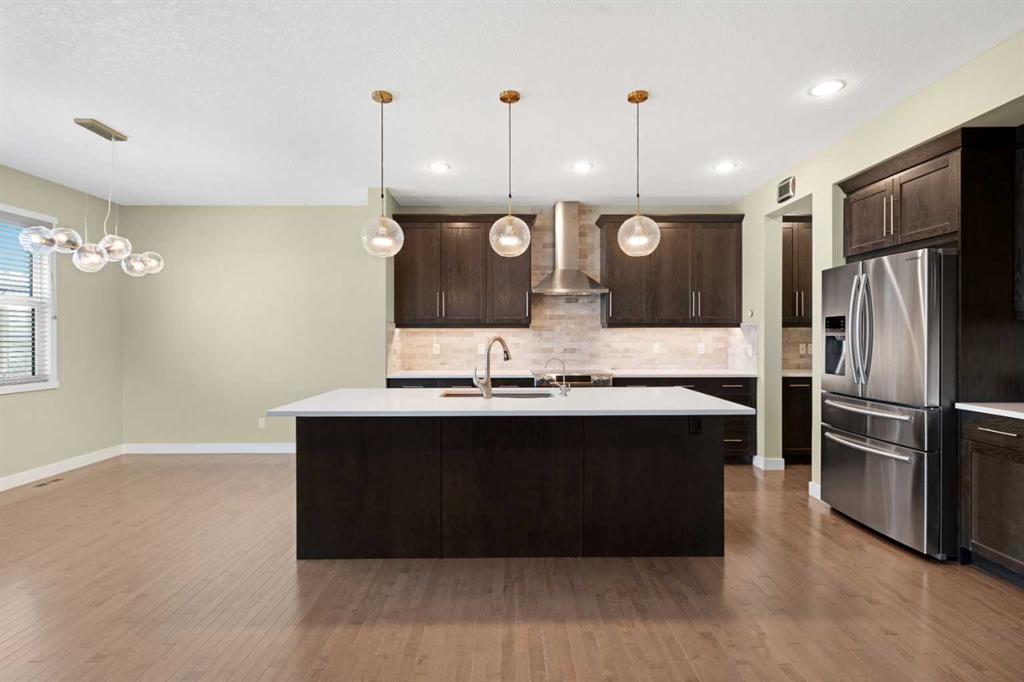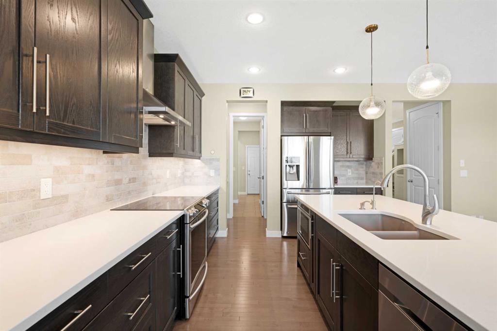 **OPEN HOUSE this SAT, Oct 18th at 2-4PM** Nestled in a family-friendly neighbourhood with a brand-new Catholic school underway, this beautifully upgraded walkout home backs onto a scenic walking path and offers over 2,500 sq.ft. of comfortable living space across three levels — perfect for growing families who value both style and function. Step inside the main level where 9 ft ceilings and gleaming hardwood flooring set an elegant tone. A quiet Den near the entrance makes a great home office or hobby spa...