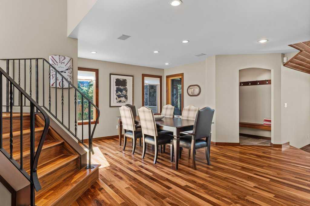 This 5-bedroom, 4046 sq ft home in the peaceful enclave of Blue Grouse Ridge offers space, comfort and mountain charm. The generous foyer opens into a spacious Great Room, featuring rich walnut flooring. In addition, select sections—such as the foyer, powder room, main-level hallway and mudroom, feature elegant travertine flooring, offering timeless natural stone appeal and durability. The living room boasts a striking Rundle stone gas fireplace and vaulted ceilings. The custom kitchen is thoughtfully desig...