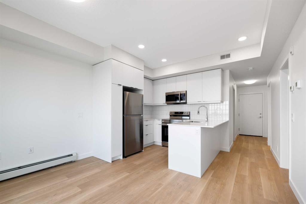 This TOP floor corner condo is complete with a private balcony, a perfect spot to catch a breath of fresh air and relax. Inside the unit you will find the floor plan is functional. Offering a primary bedroom with a private 3-piece ensuite, a second bedroom and a full 4-piece bathroom. The open living area connects seamlessly to a modern kitchen fitted with brand new stainless steel appliances and quartz counters. Practical features include in-suite laundry, a titled underground parking stall, and a storage ...