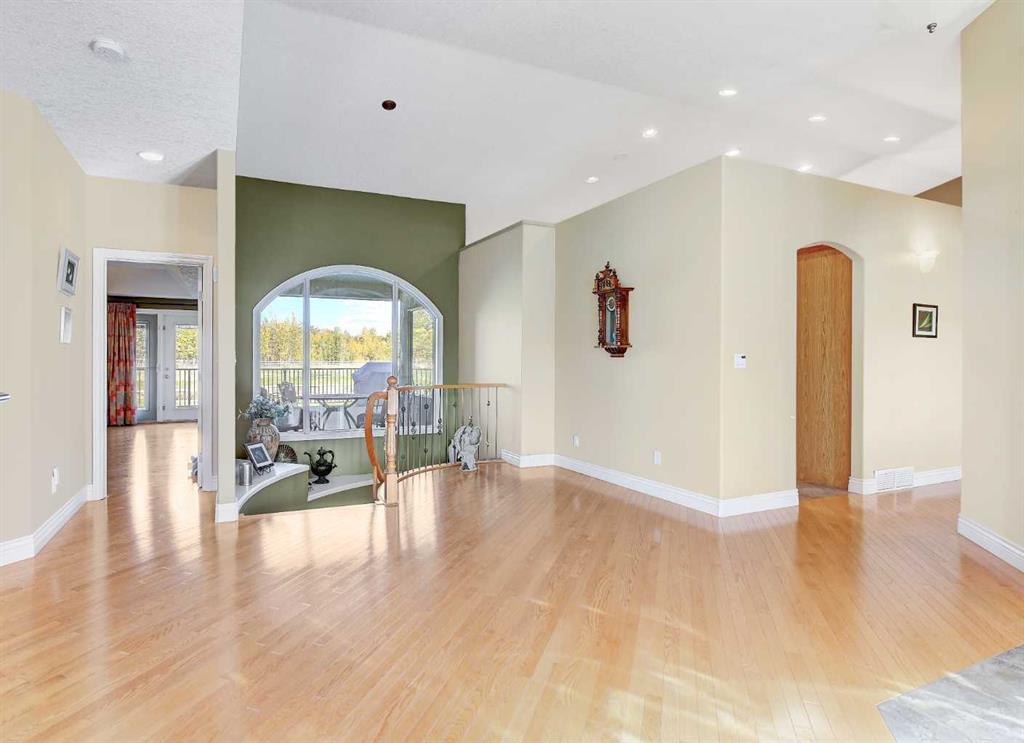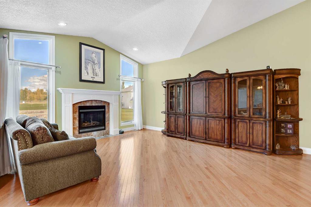 Backing directly onto the Dunes Golf Course, this custom bungalow offers room for both daily family life and entertaining. Hardwood floors run throughout the main level, setting a warm tone the moment you step inside. Off the foyer, a formal dining room with a trayed ceiling and a large window is made for dinner parties, while the vaulted living room offers another refined space for conversation. The kitchen opens up with solid wood cabinetry, a center island, tiled flooring, stainless steel appliances, and...
