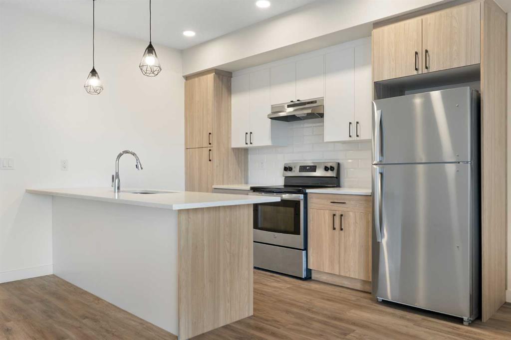 Check out this stunning top-floor stacked townhome that offers the perfect blend of style and function. Ready for immediate occupancy; this 1 bedroom 1 bath unit features over 1200 sq ft of thoughtfully designed living space, with most of the layout conveniently situated on a single level. Step inside and up to the main floor and you will discover an open-concept living area with a full kitchen that's a home chef's dream. The kitchen boasts elegant quartz countertops, soft-close drawers, and stylish two-ton...