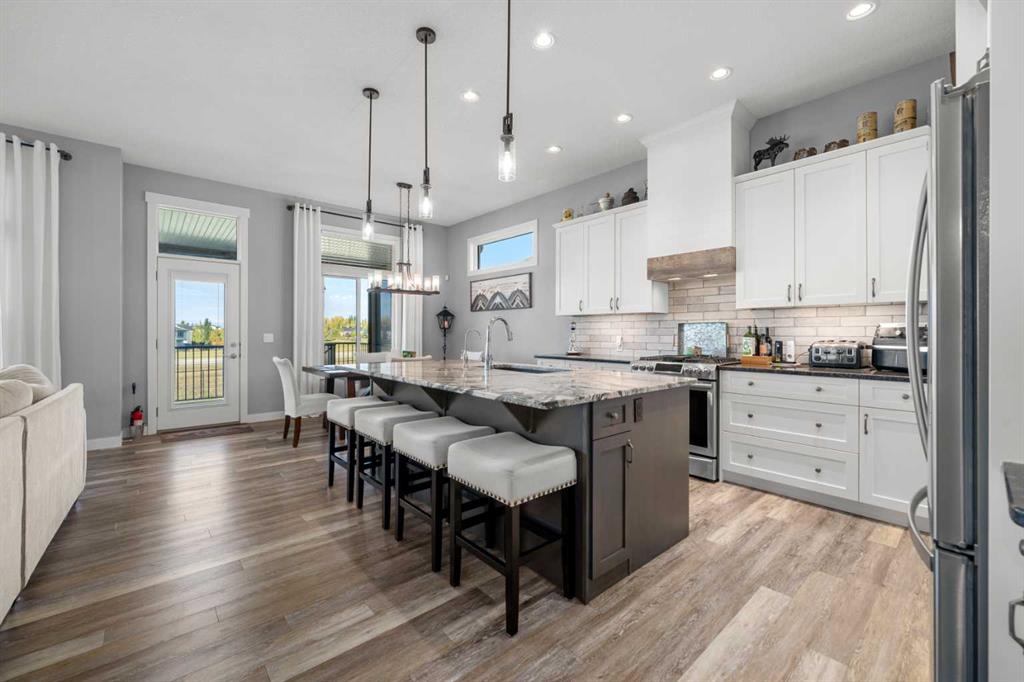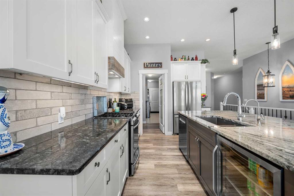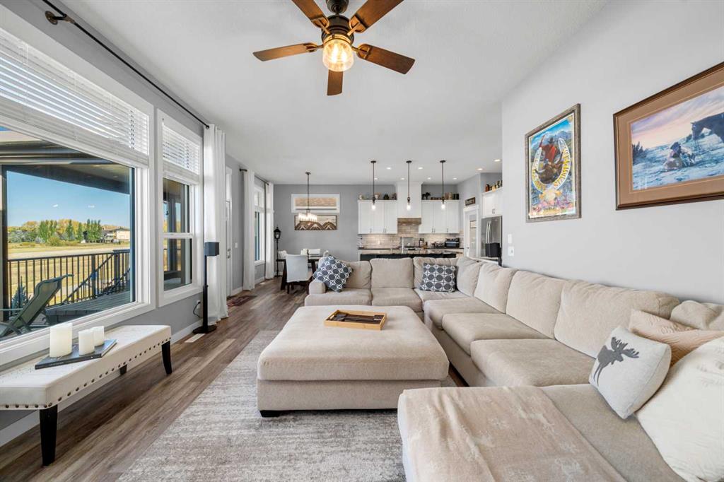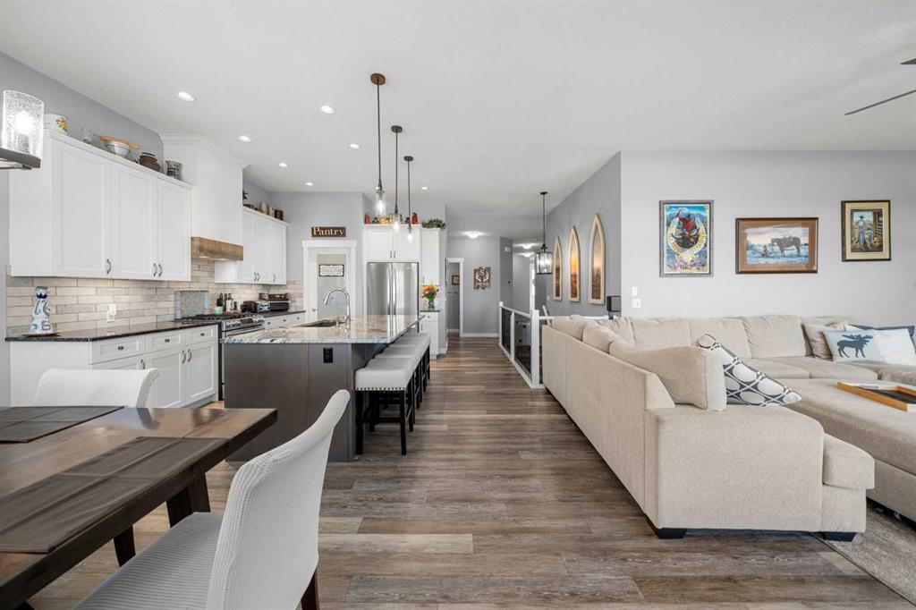 Gorgeous upgraded walkout 3 bedroom bungalow backing onto greenspace with great mountain views. This beautiful home has central air conditioning, epoxy flooring in a heated oversized garage, underground sprinklers, amazing landscaping, a full width deck with a gazebo and remote control screens, gemstone lighting and many other upgrades. As you drive up to the property you will love the low maintenance front yard and the great curb appeal on this home. Inside you will find beautiful LVP flooring, high ceilin...