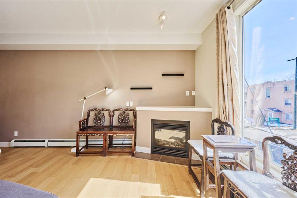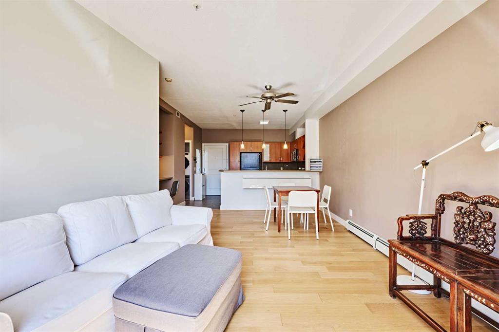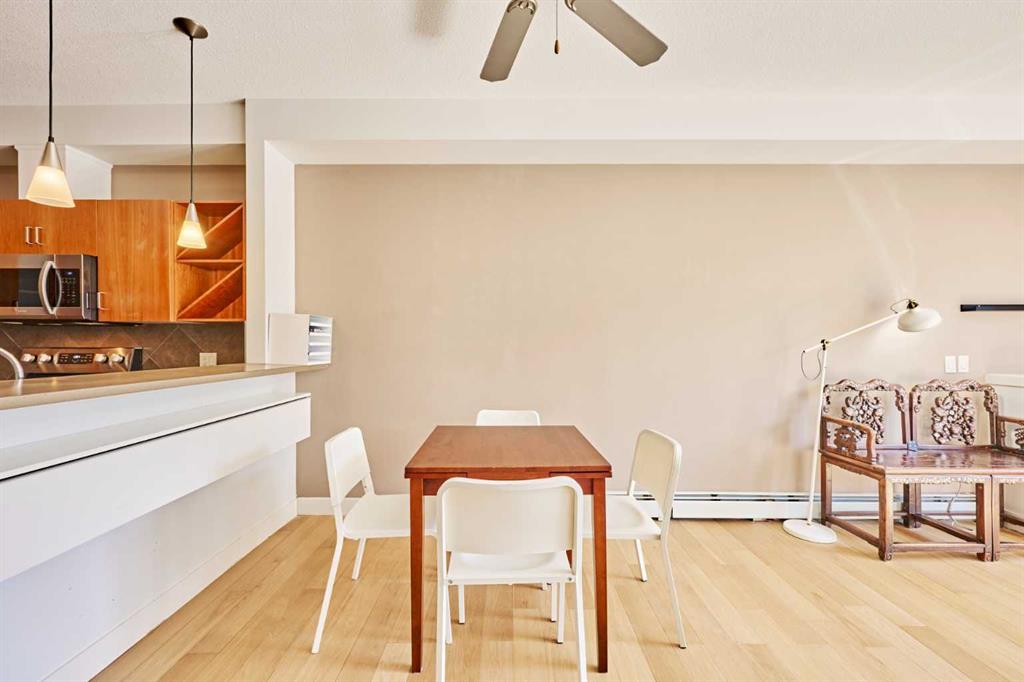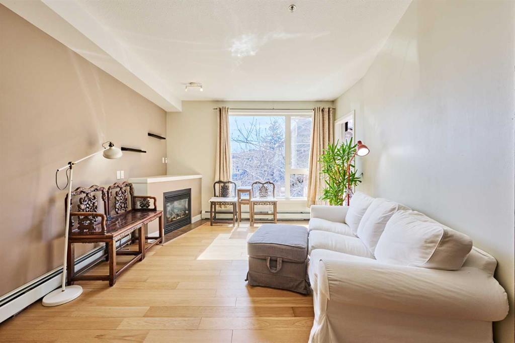 Welcome to Unit 203 in KABO, a bright and functional 1-bedroom, 1-bath condo in the heart of Altadore. This well-designed second-floor unit features an open-concept layout with 9' ceilings, a spacious kitchen(with new range, microwave and dishwasher) with maple cabinetry and breakfast bar, a cozy living room with gas fireplace, and a private covered balcony. The generous bedroom is located next to the 4-piece bath and in-suite laundry for added convenience. Heated underground parking and a separate storage ...
