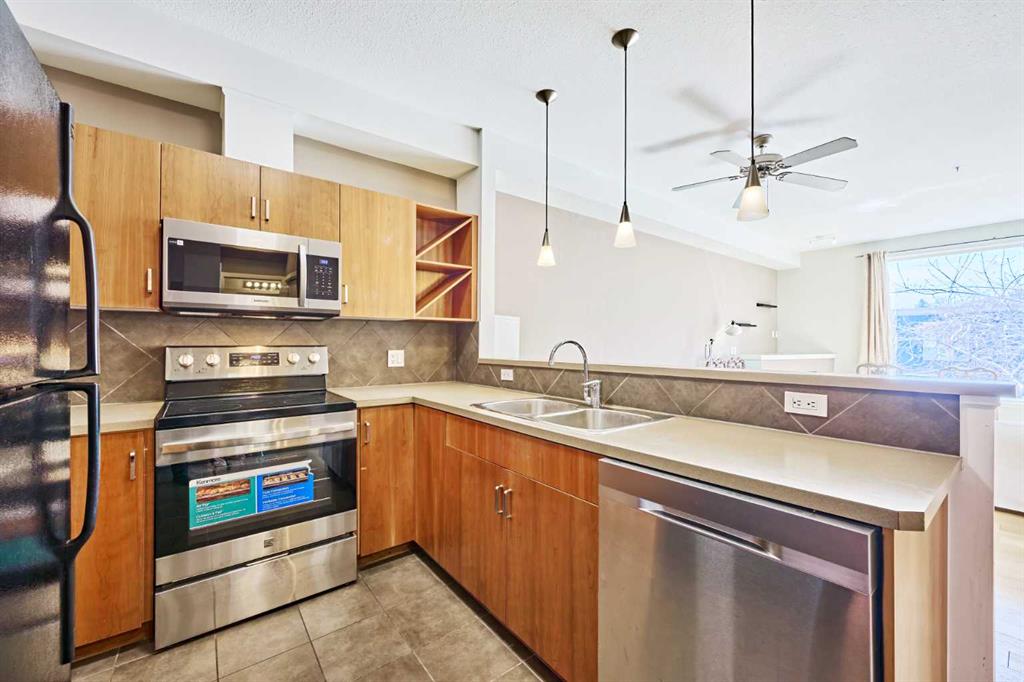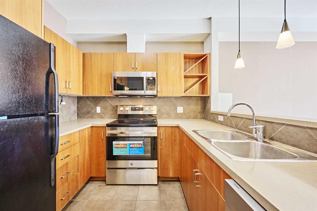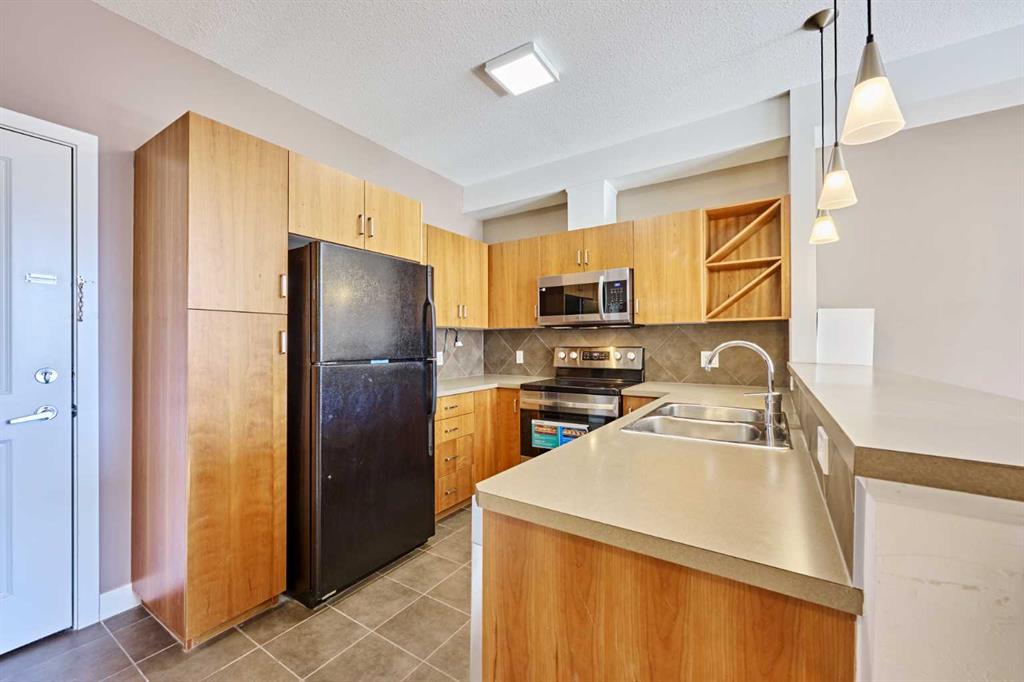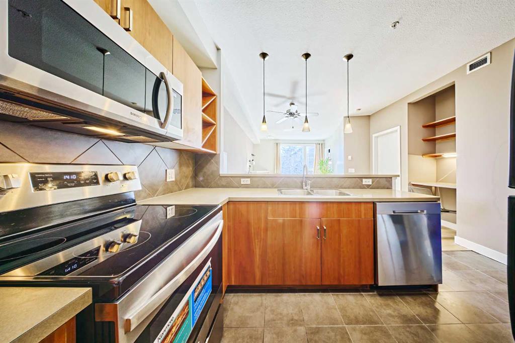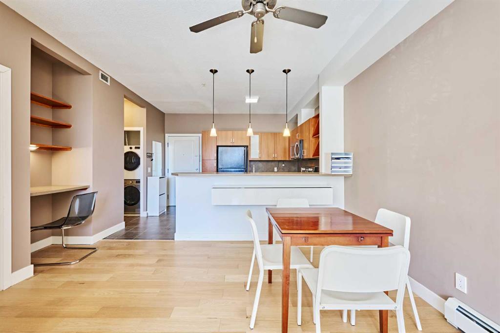 Welcome to Unit 203 in KABO, a bright and functional 1-bedroom, 1-bath condo in the heart of Altadore. This well-designed second-floor unit features an open-concept layout with 9' ceilings, a spacious kitchen(with new range, microwave and dishwasher) with maple cabinetry and breakfast bar, a cozy living room with gas fireplace, and a private covered balcony. The generous bedroom is located next to the 4-piece bath and in-suite laundry for added convenience. Heated underground parking and a separate storage ...