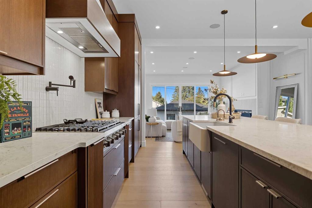 Perched on coveted 29th Avenue with UNPARALLELED CITY, DOWNTOWN & MOUNTAIN VIEWS amongst multi-million dollar homes, this exquisite, brand new 3+1 bedroom home is situated on a 33’x125’ lot & exudes the epitome of luxury, offering over 4500 sq ft of developed living space. The open, airy main level presents engineered hardwood floors, lofty ceilings & chic light fixtures, showcasing a grand foyer with floor to ceiling Rift cut oak cabinets & textured feature wall that leads to a kitchen that’s impeccably fi...