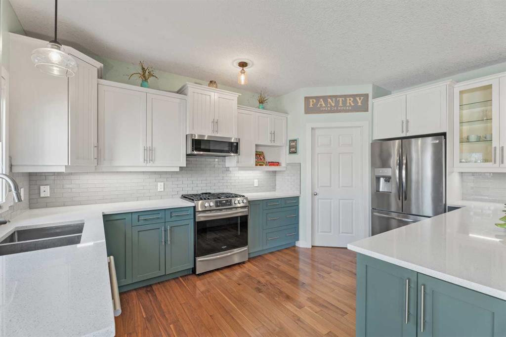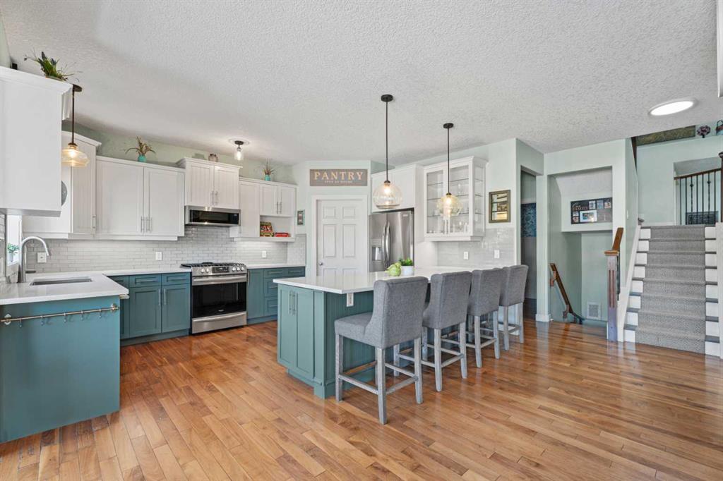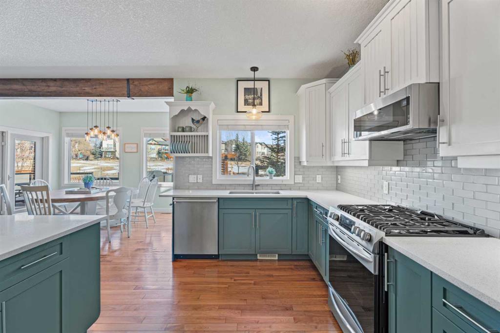 Welcome to this stunning home in the highly sought after lake community of Crystal Shores in Okotoks, offering exclusive lake access and backing onto peaceful greenspace. Situated on a large lot, this beautifully maintained property boasts over 3600 square feet of developed living space, designed for both comfort and functionality. The bright and spacious main level is filled with natural light and features a thoughtfully designed layout. The impressive kitchen is the heart of the home, complete with stain...