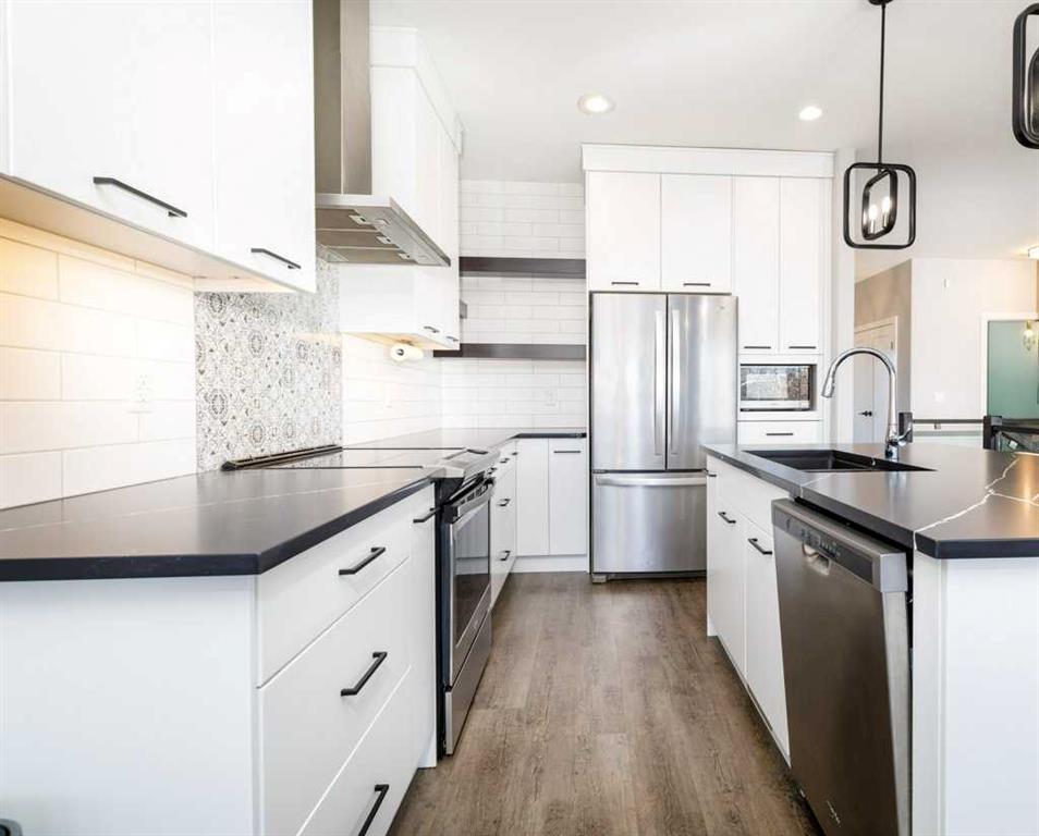 Amazing True-Line showhome in the sought-after Crestview area of Sylvan Lake! This beautifully finished home showcases the exceptional craftsmanship and upgrades True-Line is known for, offering both style and functionality throughout ~ Step inside to discover 9’ main floor ceilings, luxury vinyl plank flooring, and a thoughtfully designed layout. The kitchen is a standout feature, complete with quartz countertops, dual undermount sinks, stainless steel appliances, and slow-close cabinetry ~ The primary sui...