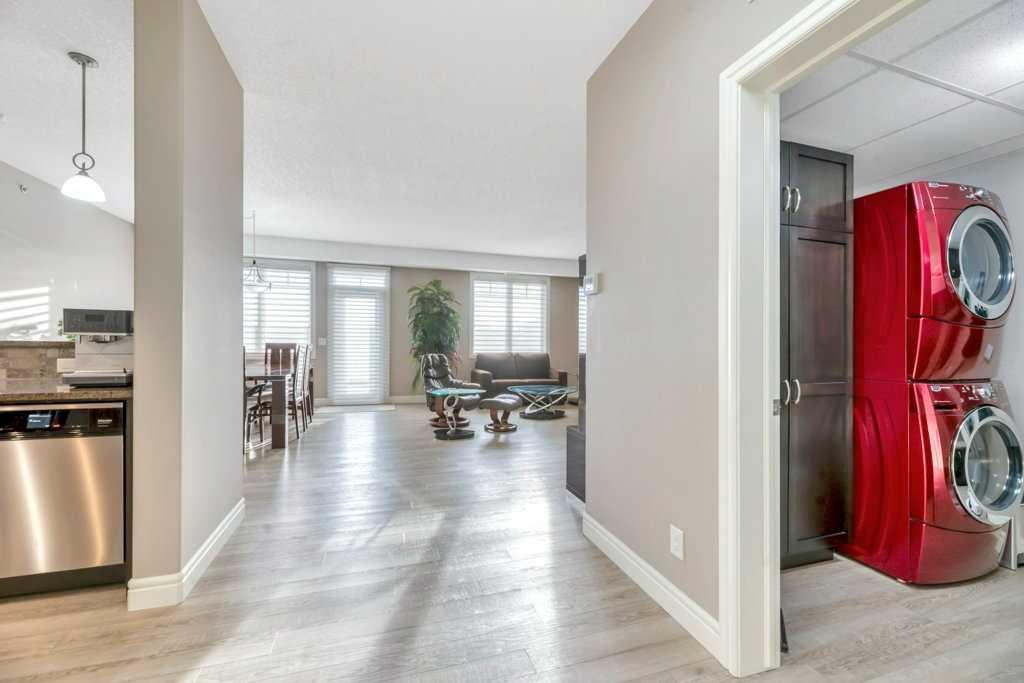 Enjoy quiet living with no unit above and a spectacular two-storey, south-facing balcony designed to capture warm sunshine, making it perfect for entertaining and summer barbecues. Ideally situated along the edge of Fish Creek Provincial Park, this award-winning complex offers direct access to miles of scenic walking, hiking, and cycling pathways, creating a true nature-lover’s retreat. This immaculate two-bedroom plus den, two-bathroom home features soaring 9-foot ceilings and a thoughtfully designed open-...