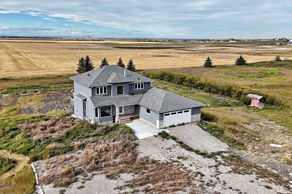 Look here carefull savvy buyers,A fantastic rural parcel,only 25 minutes from Calgary,10-15 minutes from Chestermere with a great 4 bedroom home ,fully finished with a walkout basement..Total of 5 bedrooms,This home was recently renovated,upgraded kitchen,all bath rooms are upgraded.This home lends itself to big families looking for space and comfort.Smashing views of city skyline and Rockyview rolling prarie.land is leased to a local farmer.This is a move in ready home,Quick possession is possible..