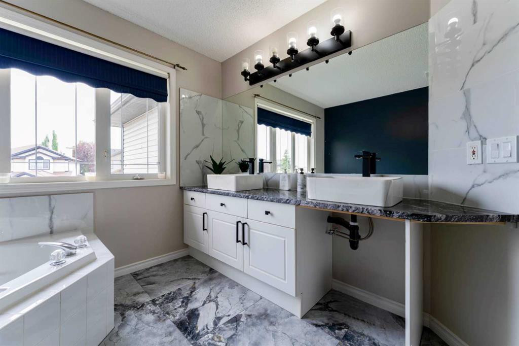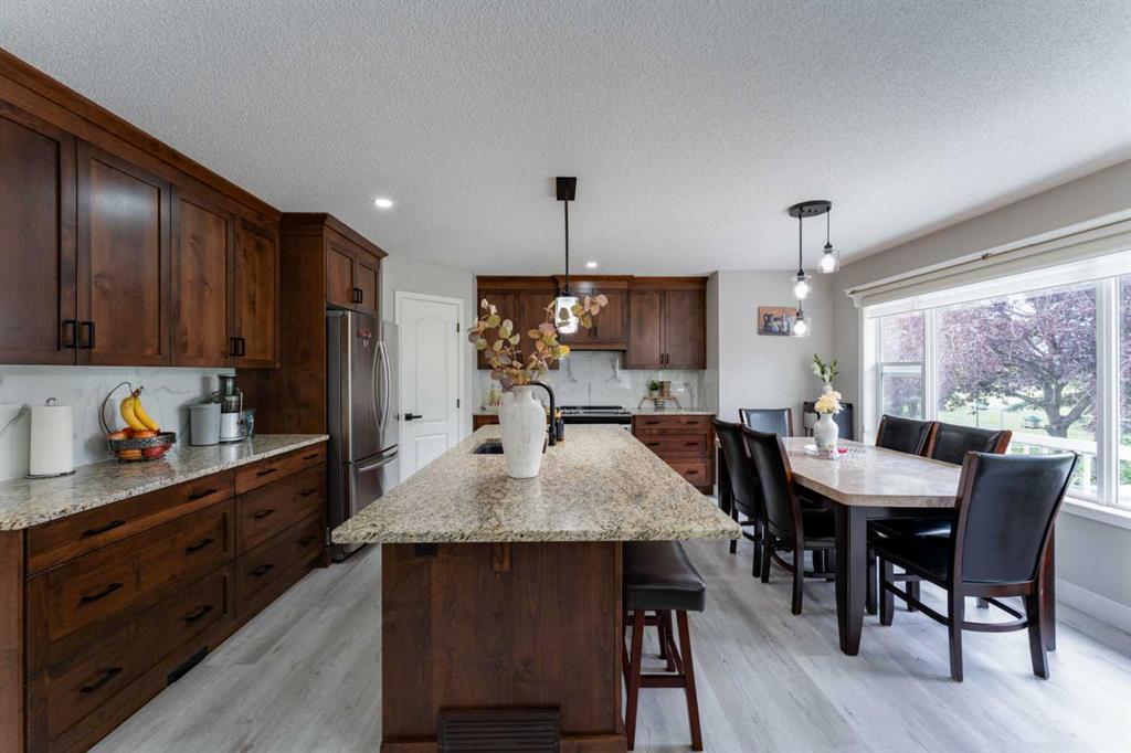 Welcome to 276 Fairways Bay NW, Airdrie!! This beautifully renovated 2-storey backs onto the GOLF COURSE, offering stunning views and a peaceful lifestyle. Featuring a bright open layout with a chef’s kitchen, MAIN FLOOR OFFICE, and spacious living areas. Upstairs features a BONUS ROOM and three bedrooms, including a luxurious primary suite. The NEWLY FINISHED BASEMENT adds 2 bedrooms, a BAR, and a full bath. Enjoy an ATTACHED DOUBLE GARAGE, nearby schools, parks, and shopping — all in the sought-after Fair...