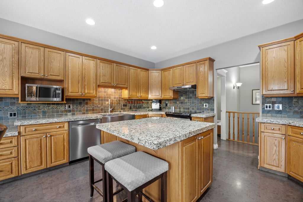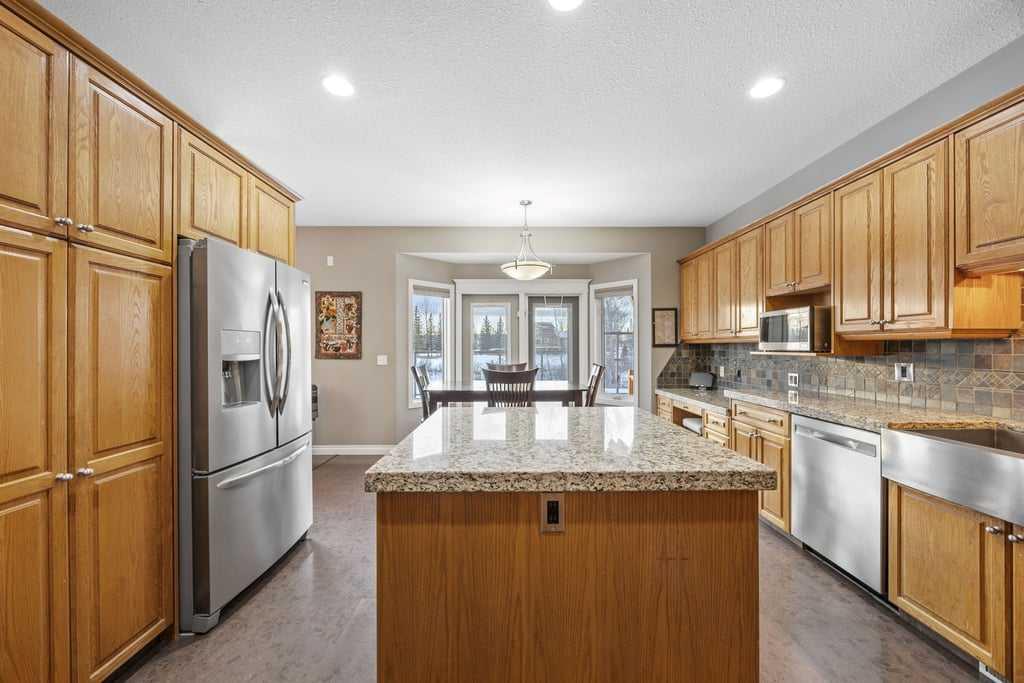 This beautifully designed walkout bungalow offers an exceptional blend of space, comfort, and functionality, all set on a picturesque 2.2-acre parcel with future potential. The main floor features three generously sized bedrooms, anchored by a welcoming hub-style country kitchen with warm cork flooring, a large central island, and an abundance of thoughtfully designed cupboards and drawers. The kitchen opens seamlessly to a bright eat-in dining area and extends outdoors to an expansive two-tier deck with gl...