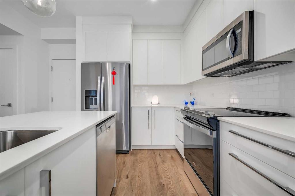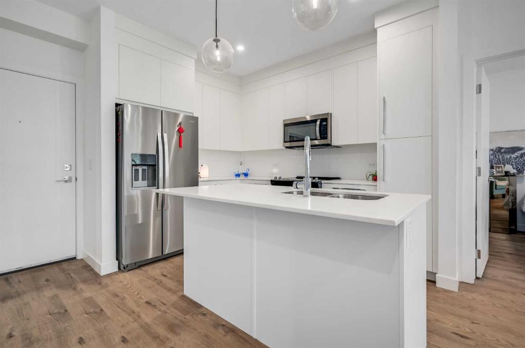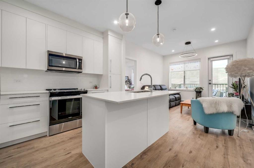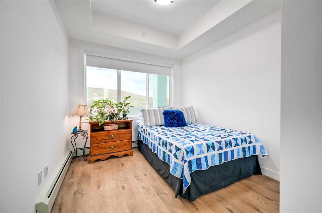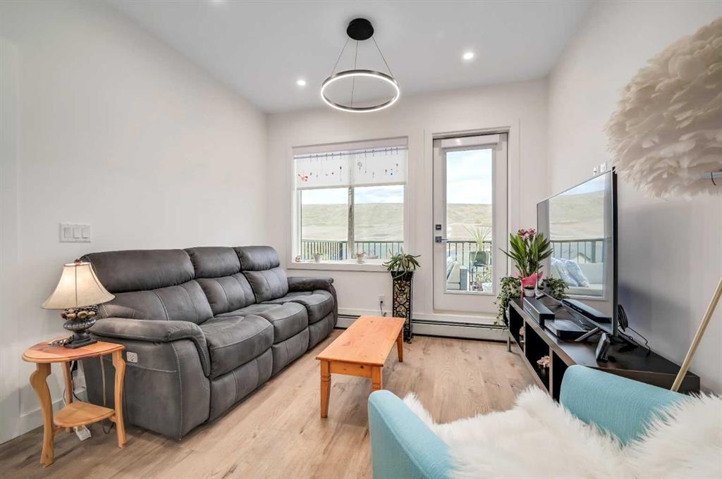 Welcome to Wolf Willow, where nature, community & modern living come together in perfect harmony! Start your cooler mornings with Starbucks (6 min) coffee on your WEST-Facing TOP FLOOR balcony of this stunning 2 bedroom, 2 bath plus DEN home! You will love the sophisticated design & thoughtful details that make life easy while living in style. Built by Truman, this upper suite offers a bright OPEN CONCEPT living space with high ceilings, luxury VINYL PLANK FLOORS & sleek white QUARTZ COUNTERS throughout. Th...
