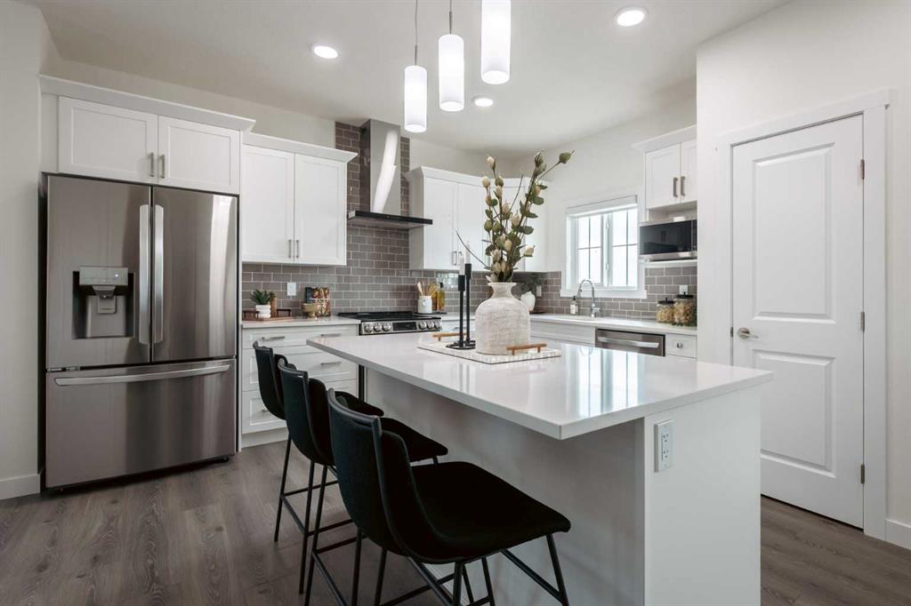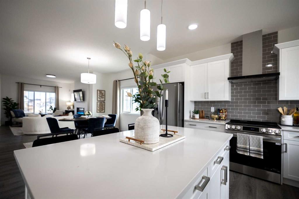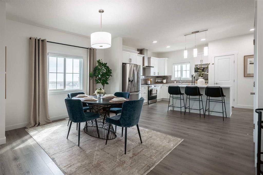 MODERN DOUGLAS WITH BONUS ROOM, SIDE ENTRY & BELMONT CONVENIENCE! Welcome to Belmont, a growing SW Calgary community known for its family-friendly vibe, scenic walking paths, nearby shopping, and easy access to major routes, perfect for balancing lifestyle and convenience. This Douglas-Z model zero lot line home features over 1800 sqft of a bright open-concept main floor with 9’ ceilings and beautiful French-imported laminate flooring, creating a warm and cohesive living space. The modern kitchen is compl...
