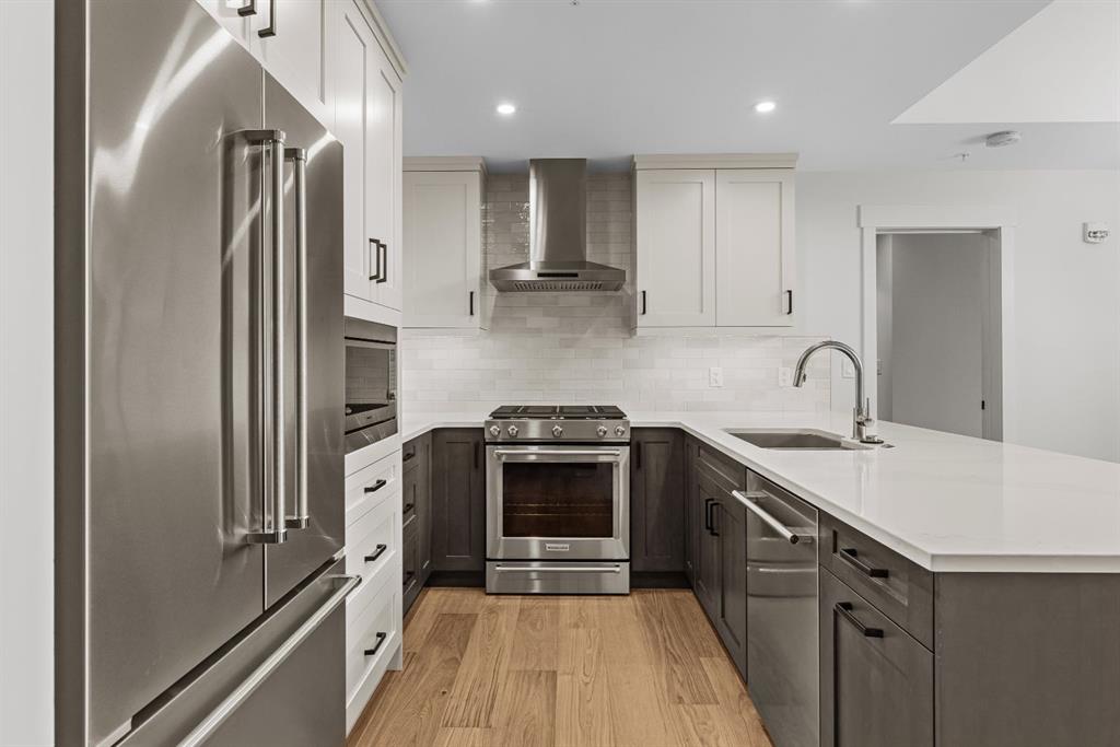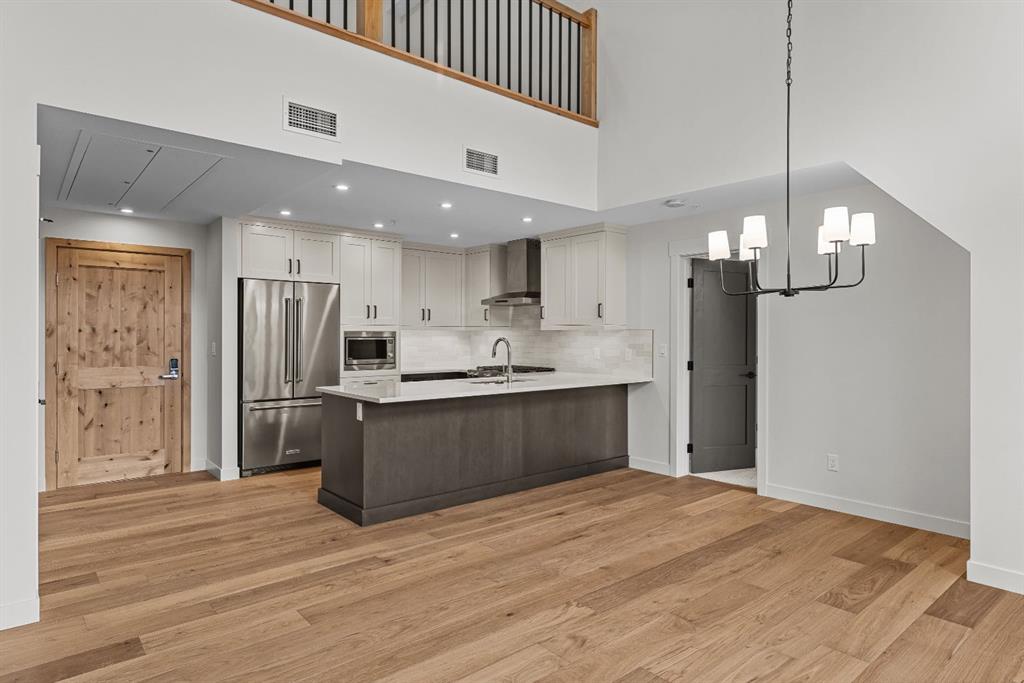 Perched at the top of Spring Creek’s newest building, Penthouse 405 at Black Swift Lodge delivers a rare mix of privacy, modern mountain design, and incredible west-facing mountain views in one of Canmore’s most walkable neighbourhoods. Brand new and move-in ready, it offers the comfort of top-quality construction, plus the added confidence of new home warranty coverage. This 2 bedroom, 2 bathroom penthouse with loft features a bright, open-concept layout highlighted by a vaulted wood ceiling, a cozy firepl...