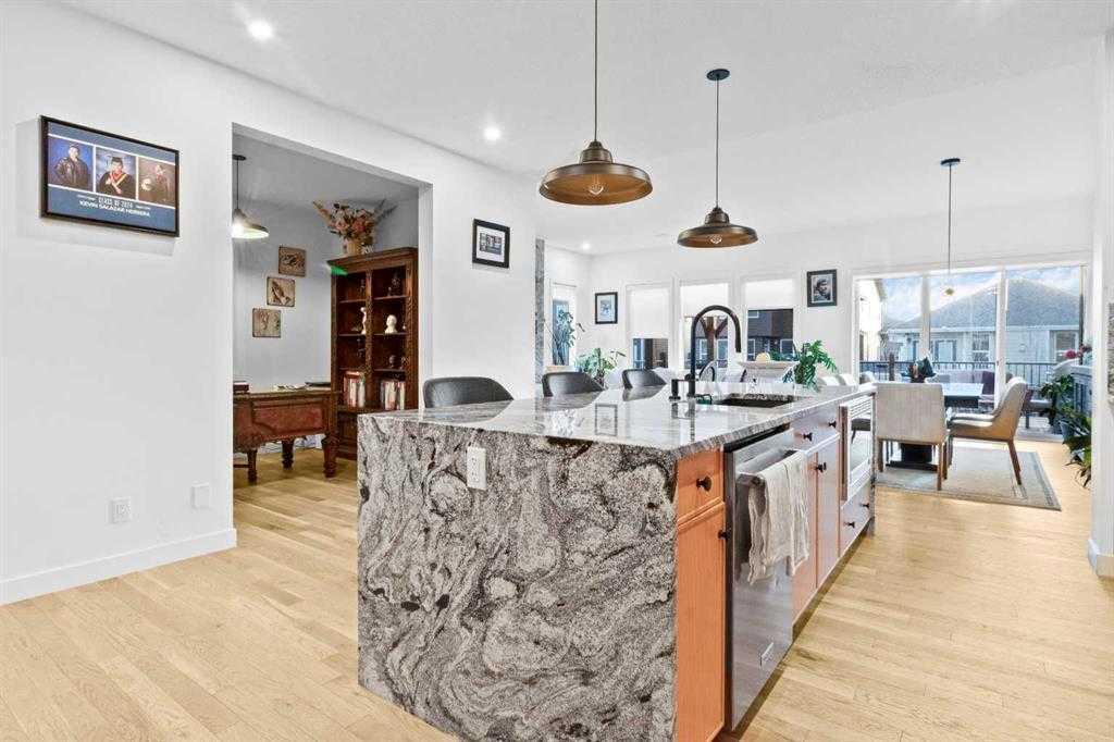 Welcome to this exceptional, fully upgraded home in the heart of beautiful Okotoks—offering quality construction and opulent features. Designed with both style and function in mind. Upon entry, this home makes an immediate impression with its soaring vaulted entry and 9’ ceilings spanning all three levels, including the basement. The rear living and dining areas elevate the experience even further with impressive 10’ ceilings and expansive windows that flood the space with natural light, creating an open an...