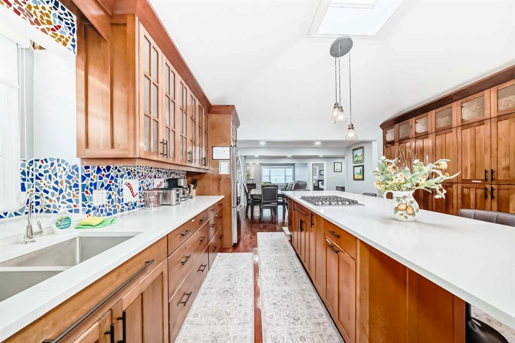 Welcome to this beautifully maintained bungalow situated on a desirable corner lot. The main floor offers a bright and functional layout featuring three spacious bedrooms and two full bathrooms, including a generously sized primary bedroom. The fully developed basement provides three additional bedrooms, two full bathrooms, and expansive living and recreation spaces—ideal for extended family or guests. The home showcases a renovated kitchen with custom cabinetry, quality finishes, ample counter space, and ...