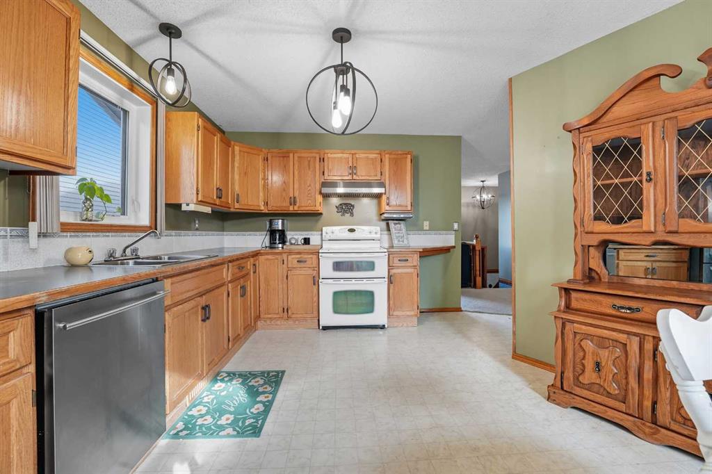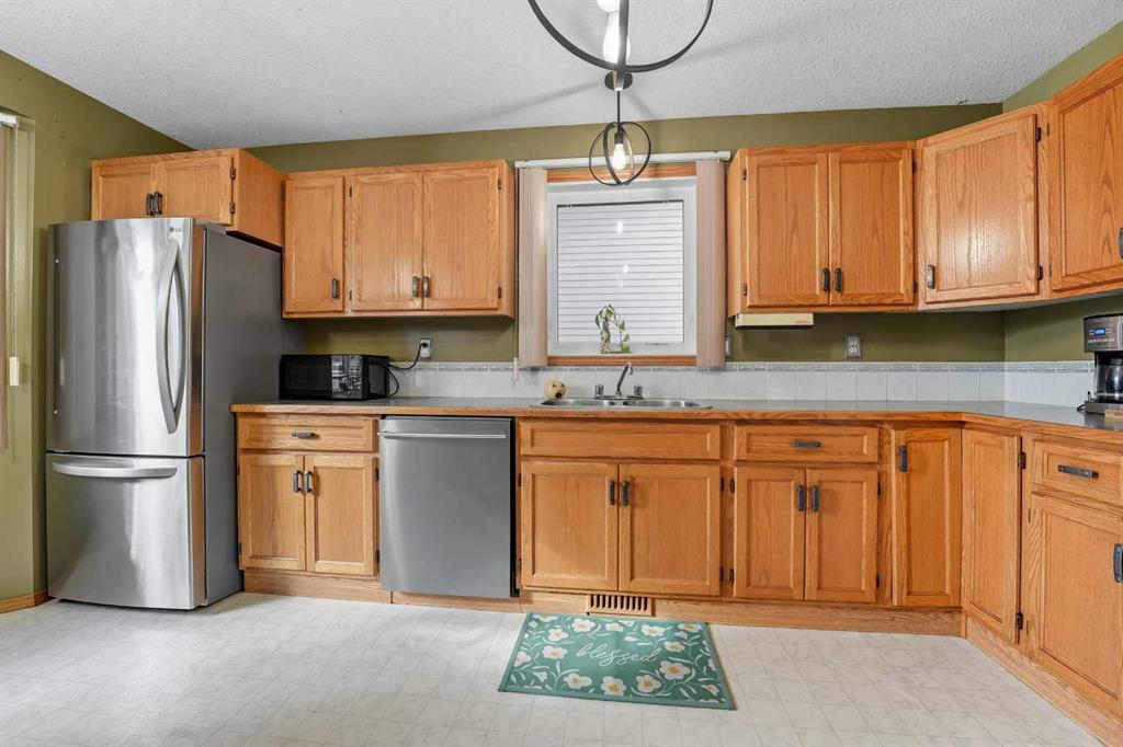 A fully developed bilevel! The entryway greets you with an upgraded light fixture. The living room is flooded with natural light through the large triple-pane front window. Oak kitchen cabinets are accented by upgraded hinges and pulls, some newer stainless steel appliances, including the stainless steel hood fan (2025) and the Bosch dishwasher (2-3 years ago). There is also a double oven for your convenience. The eating area has a patio door to the back deck that leads to the mature yard. The primary bedro...