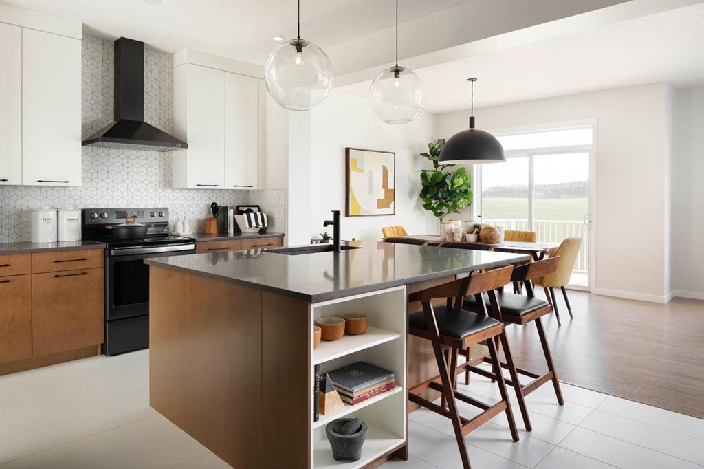 Welcome to this stunning former showhome in the desirable community of Sirocco at Pine Creek. This beautifully appointed 2,500 sq. ft. two-storey sits on a traditional lot and features a 22’x22’ front-attached garage. Step inside to discover mid-century modern inspired design blended with warm, contemporary finishes. The open-concept main floor showcases rich wood cabinetry, sleek black stainless appliances, and a large central island perfect for entertaining. Adjacent to the kitchen, the dining area and l...
