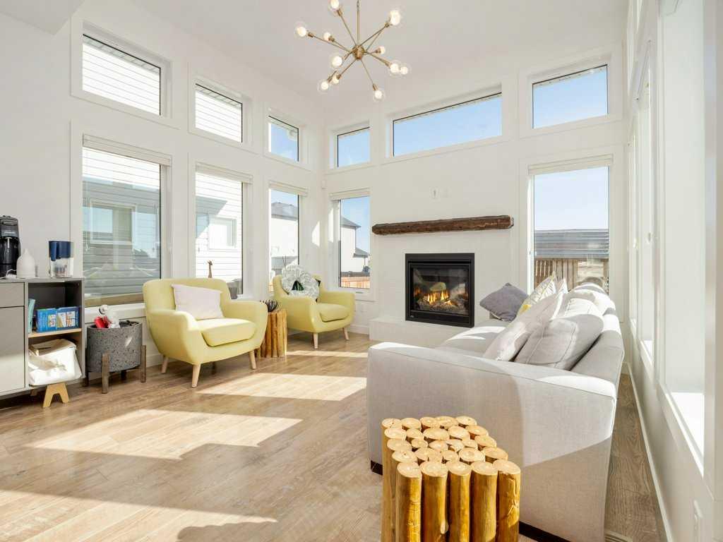 This stunning 2-storey former showhome is packed with upgrades and style! Featuring 5 bedrooms, an open-concept main floor with tons of natural light, sleek black chrome appliances, and a striking feature fireplace. Upstairs, skylights brighten the bonus room and the spacious primary suite offers a dream ensuite. Enjoy vaulted ceilings, A/C, blinds, a finished deck, underground sprinklers, full landscaping, and a solar system from Energy Smart! Move-in ready and beautifully designed!