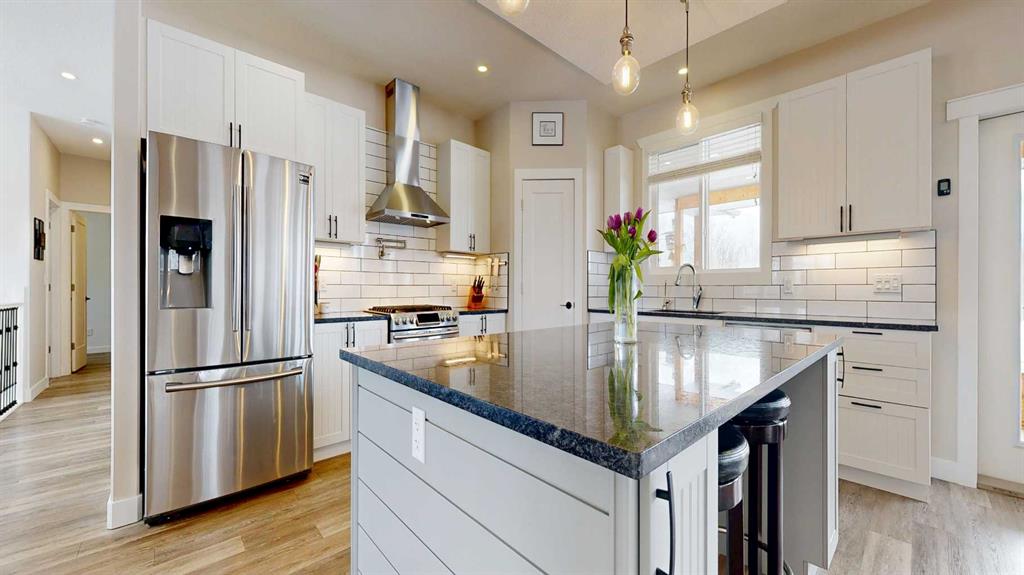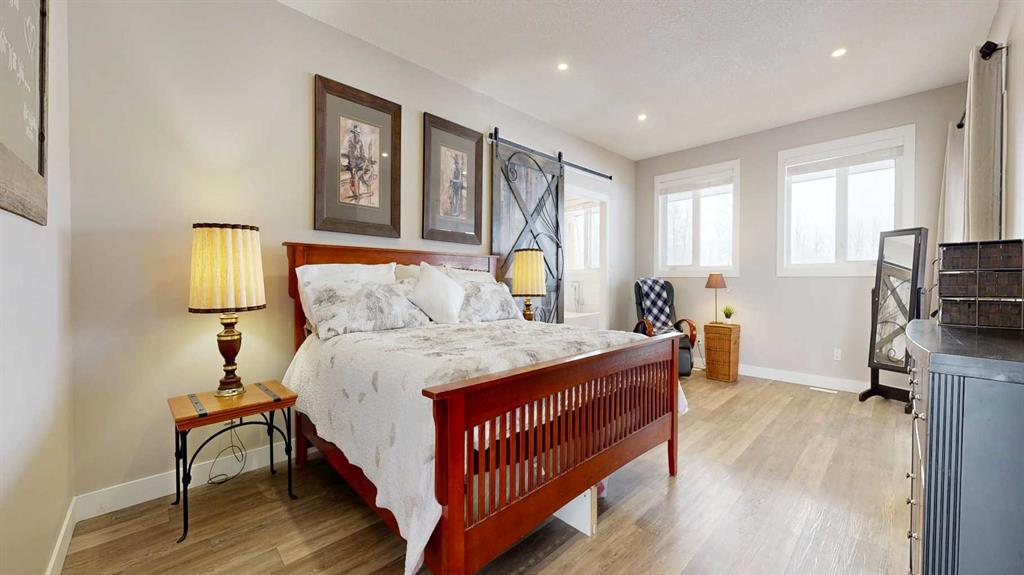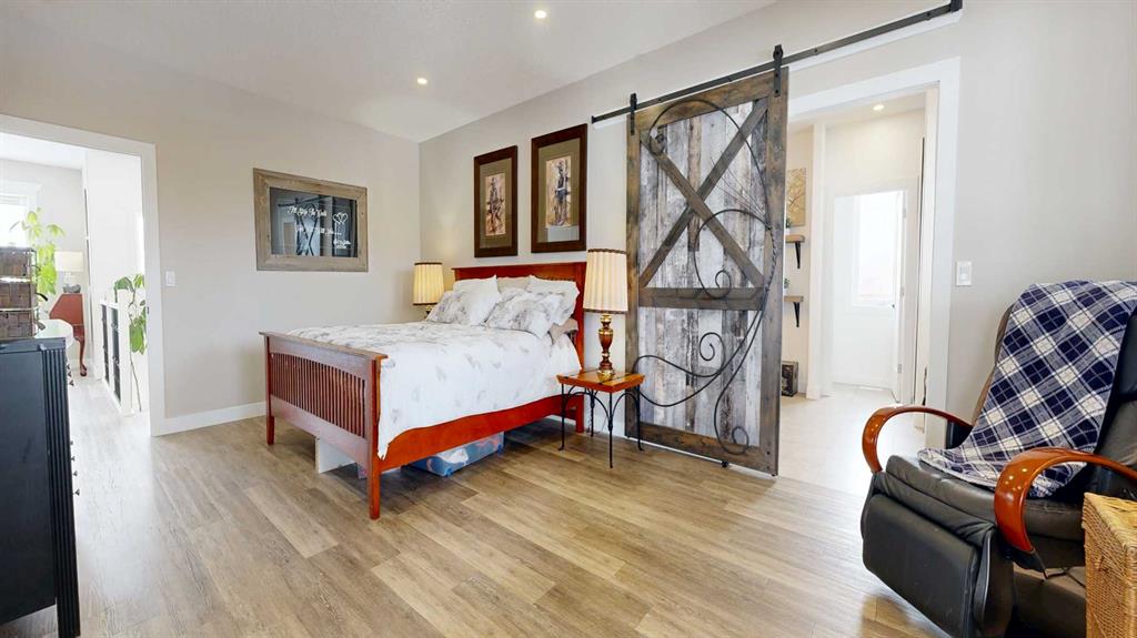 Luxury meets practicality in this one-owner, custom built 2018 home, designed with intention, flow, and everyday comfort in mind. Pulling into your oversized 27x30’ attached garage, you’re welcomed into a spacious entryway, your main floor laundry, and a convenient 3-piece bathroom, keeping everything functional and within reach. Down the hall, you’ll find your primary retreat. The attention to detail stands out immediately with a custom sliding barn door that ties seamlessly into the design of the adjoinin...