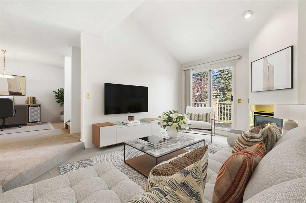 Welcome to #77, 5810 Patina Drive SW — a beautifully maintained multi-level townhome nestled in the picturesque community of Patterson. Offering over 1,590 Sq.Ft. of above-grade living space plus a fully developed basement, this home features a total of two bedrooms + family room, providing space and flexibility for your lifestyle. The main level boasts vaulted ceilings, a bright and welcoming living room with a cozy gas fireplace, and a mix of carpet and laminate flooring throughout. The kitchen is both fu...