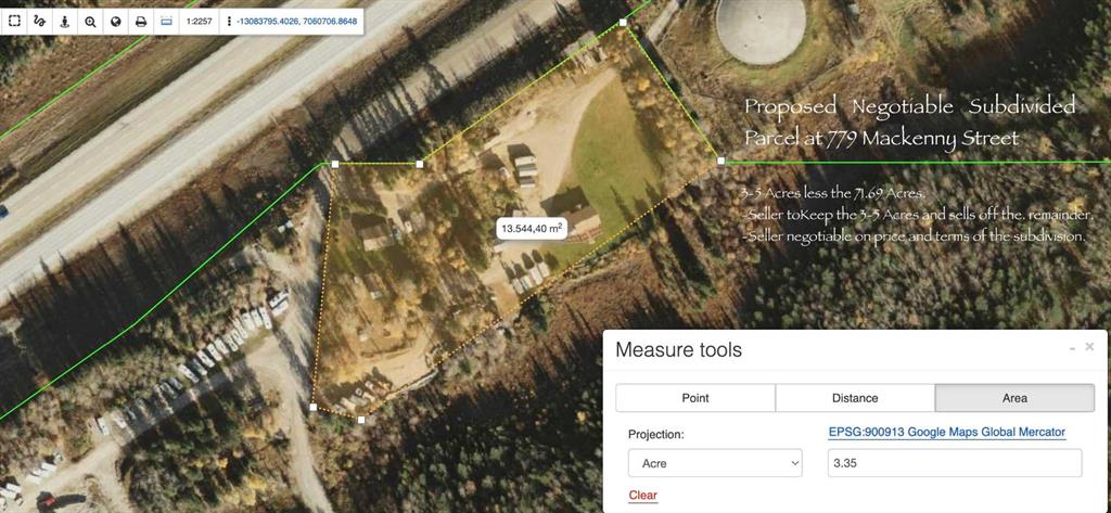 Your out door oasis awaits you!. 779 Mackenny street is a 71.91 Acre sub dividable lot located south of hiway 16 within Hinton municipal boundary. It is loaded with endless potential and so many extras! This is a private secluded parcel with developed road and trail system throughout. The main 4 bedroom home sits upon an expansive open field with views of wooded forest in all directions. This home also features custom hickory kitchen cabinets that opens up to a massive, newly constructed private wrap around...
