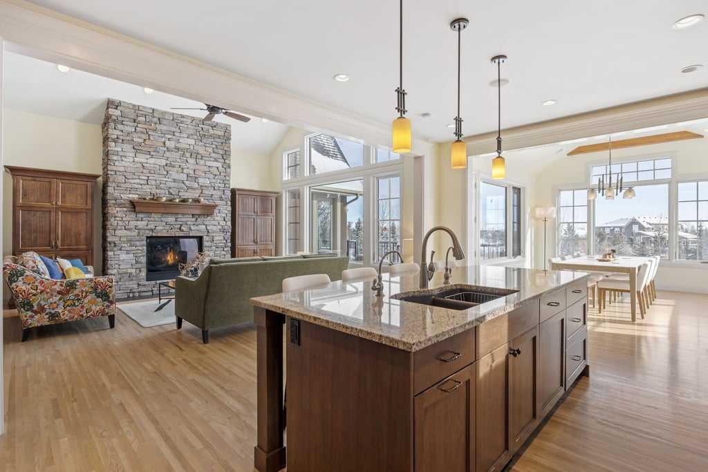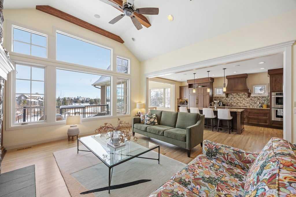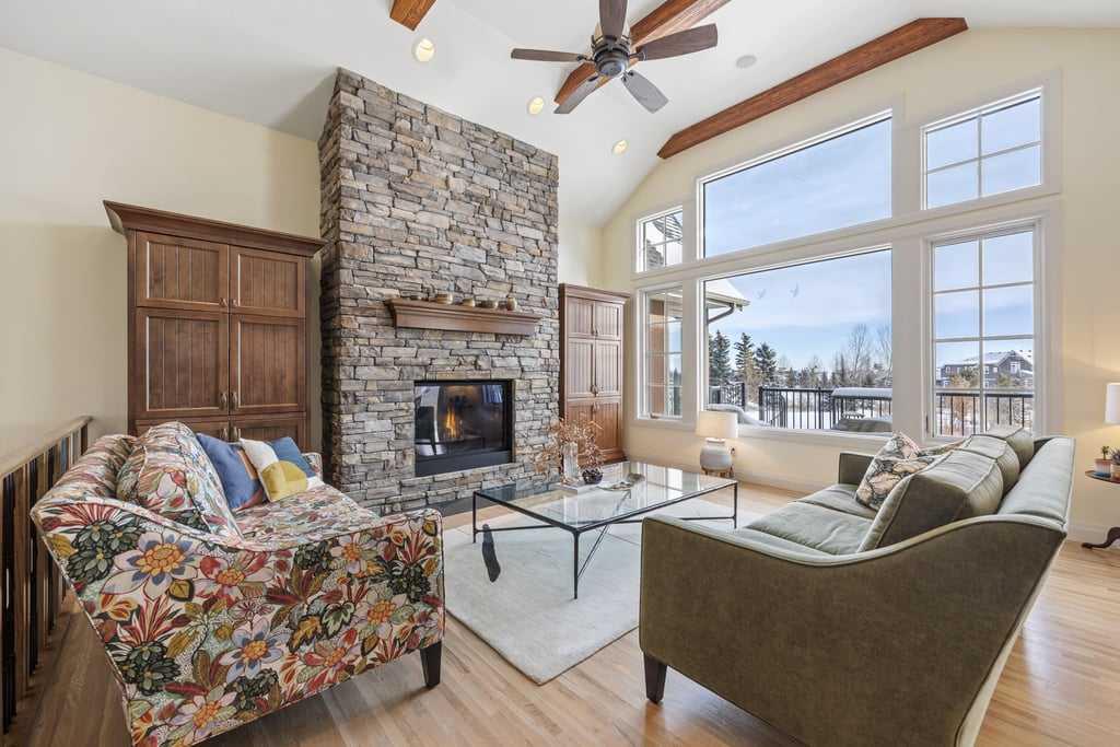 **OPEN HOUSE - Sun Apr 19 (2-4pm)**Set on over 2 acres of beautifully treed land, this exceptional Springbank home offers a rare blend of privacy, space, and refined comfort, all just minutes from west Calgary amenities and top schools. A curved driveway winds through mature landscaping, creating a strong sense of arrival as the home comes into view. Inside, soaring vaulted ceilings with exposed beams and rich hardwood floors set the tone in the main living area, where a striking stone fireplace anchors the...