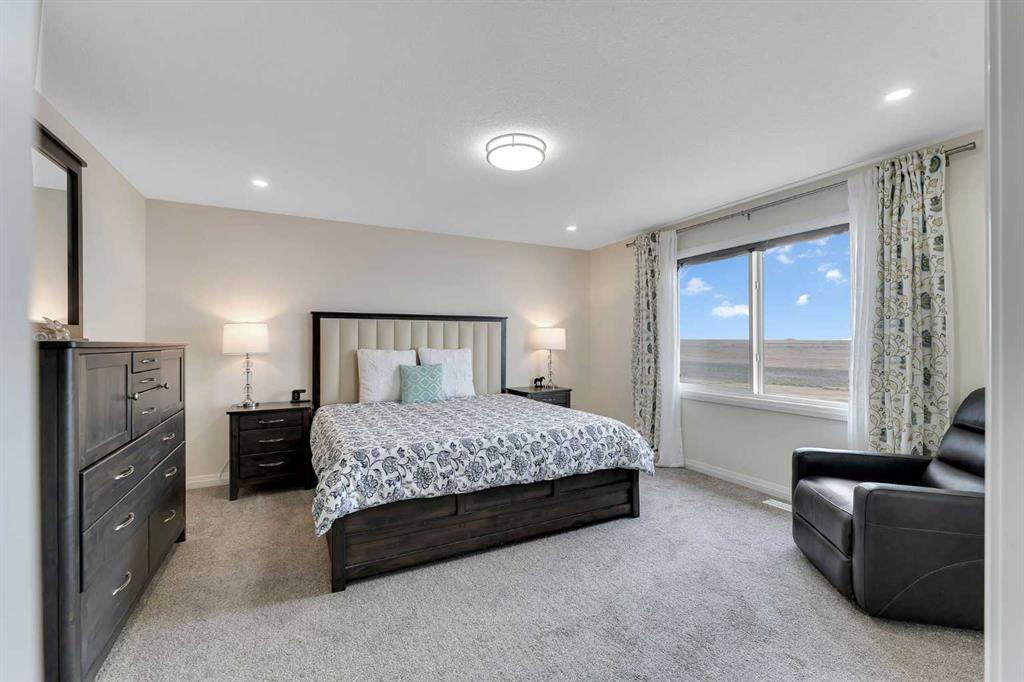 Welcome to this stunning home at 838 Edgefield Street, Strathmore. Boasting over 2,400 sq ft of luxury living, this bright and open plan features 8-foot doors, rounded wall corners, and 3-pane high-efficiency windows throughout. On the main floor, discover a spacious Office/Den ideal for working from home, and a gourmet kitchen upgraded with a gas stove, fridge, range hood, and gleaming granite countertops. The kitchen, living and dining areas flow seamlessly over rich engineered hardwood, accented by cust...