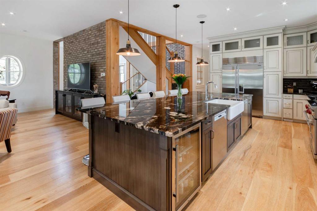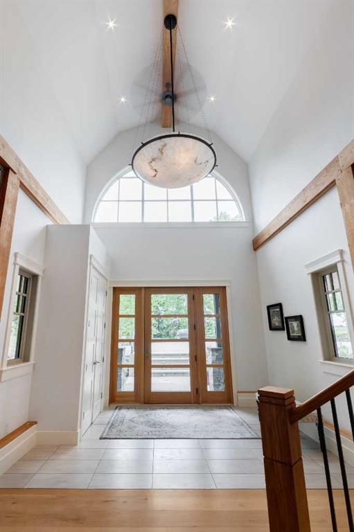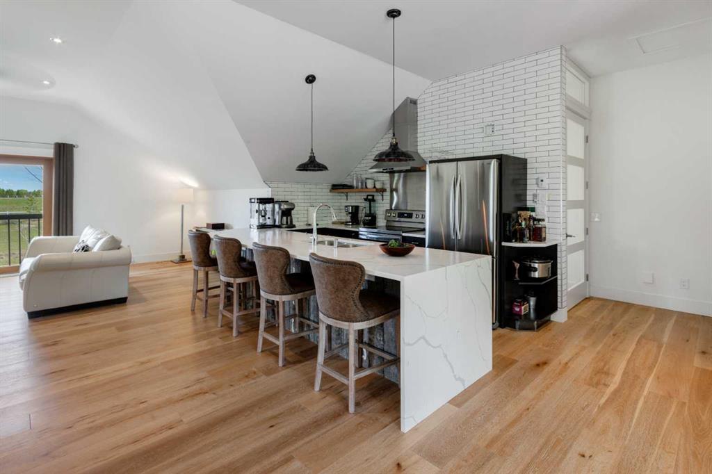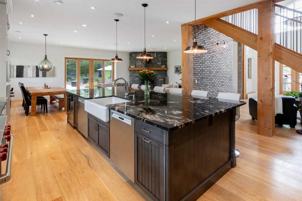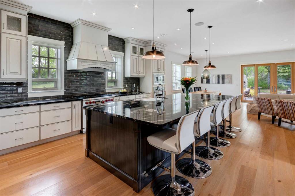 This unique gated 2-acre parcel is a 1 of a kind 2 story rustic home nestled within 25 Min to downtown Calgary. With ample living space this home has numerous unique & elegant features: a cathedral grand foyer with rustic timber beams, tiled floors & stunning staircase are just the beginning. The home office is versatile with exterior & interior feature windows. Beyond the office is a Chef’s dream kitchen which has everything you need including 48” Sub Zero water/ice fridge, 36” Wolf Range with custom Hood ...