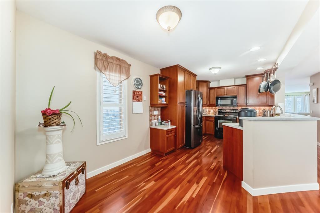 This 1,784 sq. ft. home is situated on an extra-length 4,499 sq. ft. lot on a quiet street near local parks. The interior features cherry hardwood flooring and a kitchen with solid wood Merritt cabinetry, under-cabinet lighting, and a new refrigerator (2024). A central skylight over the stairwell provides natural light to the upper level, which includes three bedrooms and an enclosed computer nook designed for use as a private office or library. The oversized primary suite accommodates a chaise lounge and f...