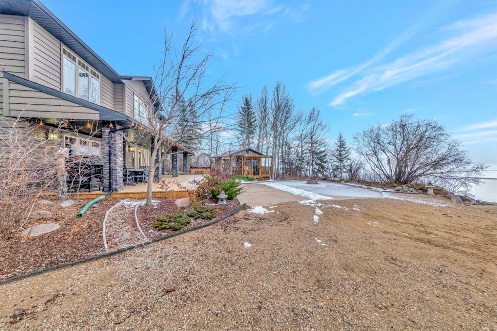 Luxury and lifestyle come together on one of Sandy Beach’s most expansive sandy shorelines. This executive waterfront home offers over 3,500 sq. ft. of premium living space, is perfectly positioned for full four-season enjoyment, and offers direct lake access, endless summer water activities, winter recreation, golfing, camping, clubhouse amenities, and more. The property is beautifully developed front to back, with a dry-rock landscape design, a double detached garage, additional sheds for wood and stor...