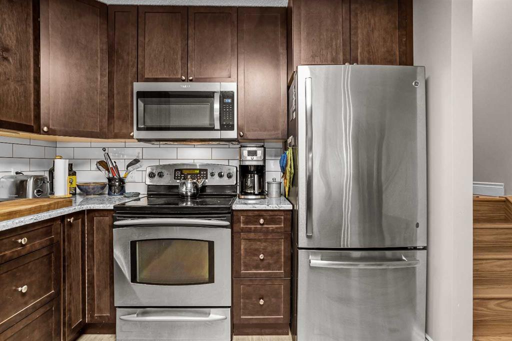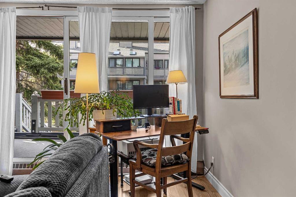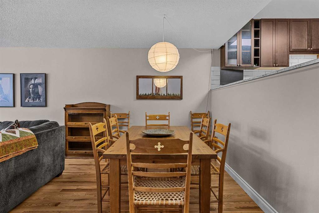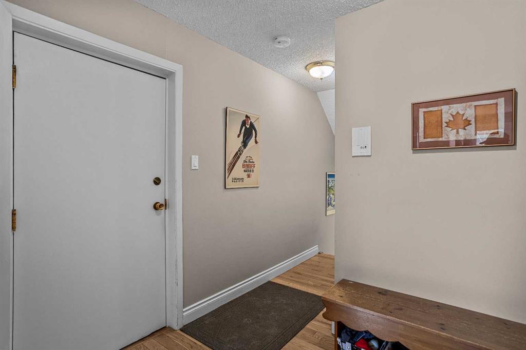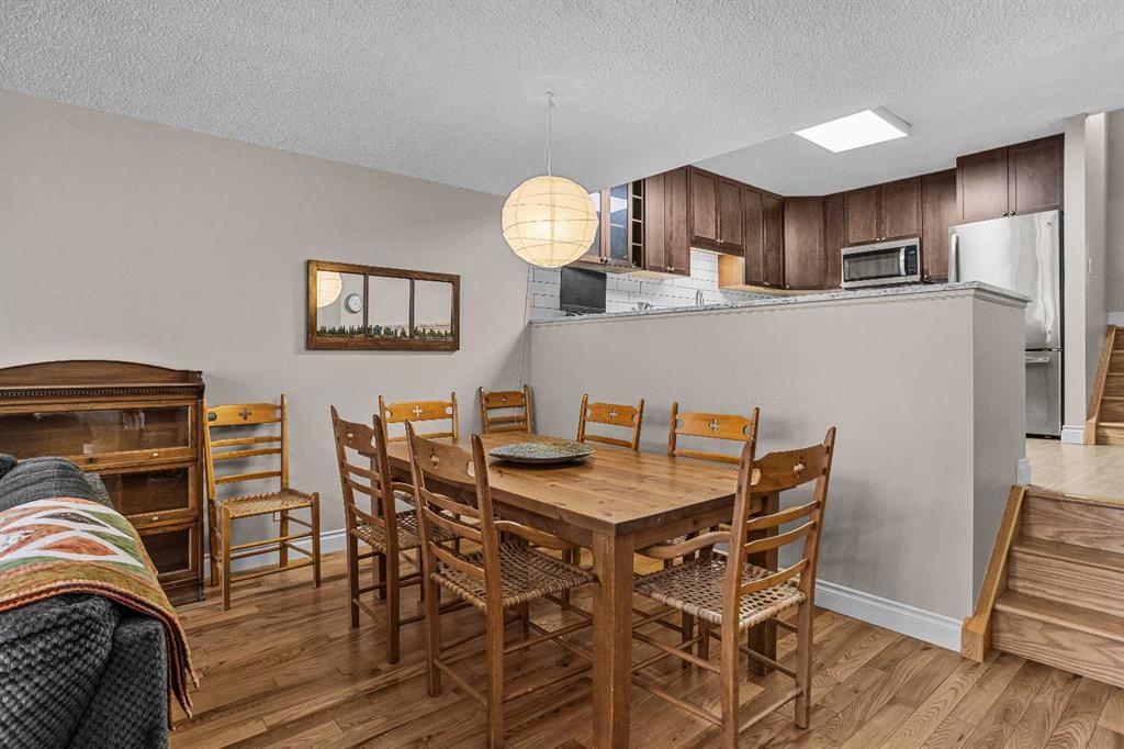 This centrally located 2-bedroom, open-concept condominium offers exceptional space all on one level-rare to find in Banff's market. Conveniently situated close to schools, shopping, and everyday amenities, this home is perfect for comfortable mountain living. Recent upgrades include beautiful maple hardwood flooring throughout, granite countertops in both the kitchen and bathroom, new kitchen cabinetry and modern appliances. Enjoy a cozy fireplace in the living area and step out onto the large covered deck...